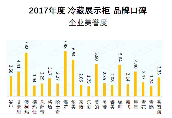 2017年12月19日,中国统计信息服务中心大数据研究实验室与中国质量新闻网联合发布了《2017年度中国冷藏展示柜品牌口碑研究报告》(以下简称《报告》)。冷藏展示柜口碑总榜出炉,澳柯玛从20个品牌中脱颖而出再登榜首。