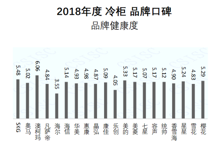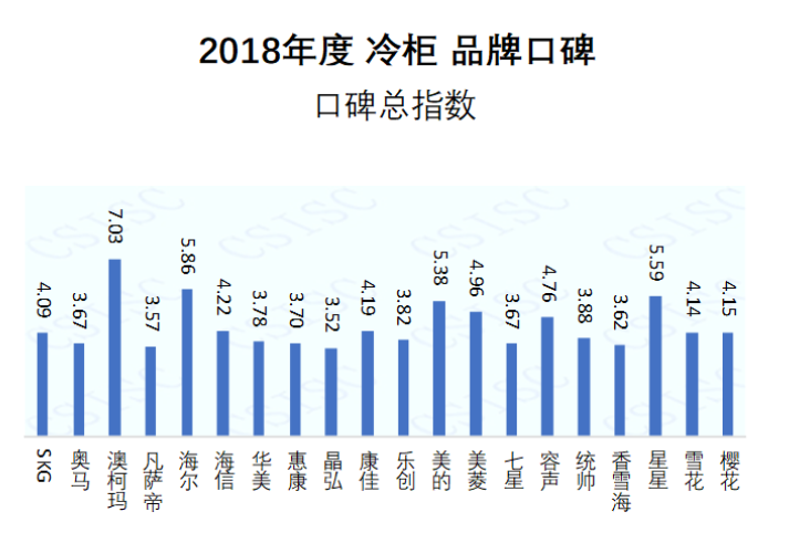 口碑总指数:澳柯玛、海尔、星星在口碑总指数中位居前三。澳柯玛、海尔、星星、美的、美菱、容声、海信、樱花在近两期中表现稳定,口碑总指数位居前十。