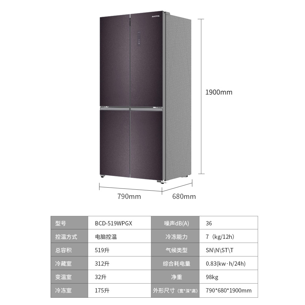 型号:BCD-519WPGX(冰晶釉)